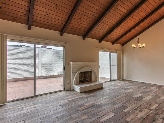 Spacious 2 bedroom 1 bath patio home. Vaulted open beam ceiling in living room. Sliding door to back yard from Master bedroom, Living room and dining area. Private back yard, low maintenance. Corner lot OPEN HOUSE SAT. 9/22 12-3pm