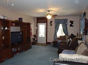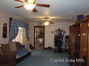 Beautiful front porch invites you into this charming home. Large rooms with fresh paint, newer windows,fans,furnace,water heater. Alarm system w/smart technology that you can access with a smartphone.Save on your energy bills, turn your thermostat up or down with your phone, will also notify you of severe weather if you are home or away, smoke alarm notifies fire dept.in emerg.$70/mo. Playset & trampoline stay too. AC in the garage for your mancave guys. Bsmnt can be finished.
