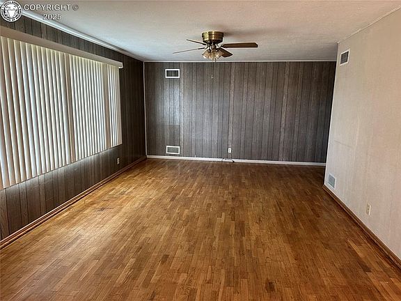 Centrally located ranch home on almost a third of an acre with views of the Wet Mountains and an irrigated field across the road has a big fenced back year for the kids and/or and animals. Enter into this home from the south side into the expansive LIVINGROOM 20.8x12.8, with Oak floors and attached dining room and a passthrough to the kitchen. The dining rooms huge window looks out into the courtyard/patio with sun from the east. Kitchen has plenty of wood cabinets with pull out drawers and a built in seating area. Both the furnace and the hot water heater are 2 years old and the composite roof was just installed March 13th,2025. 3 BIG carpeted bedrooms with built-ins consisting of floor to ceiling drawers, closets and large windows for lots of light. Down the hall is a FULL BATH, with newly installed LVP. Both the furnace and the hot water heater are 2 years old and the composite roof was just installed March 13th,2025. Clean, vacant and ready for a quick close.