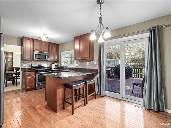 Just in time for the holidays! You won't want to miss this nicely updated 4 bed, 2.5 bath two story, located on very quiet tree lined street just blocks from Algonquin's famous Fox River bike and walking trail. This wonderful home was completely updated in 2010 and is move in ready! Terrific floorplan provides plenty of space for entertaining or hosting family get togethers and has both formal living and separate dining rooms. The newer eat in granite kitchen has loads of 42" maple cabinets, stainless steel appliances, tiled backsplash, nice pantry and breakfast bar and is open to large family room with great views and a cozy woodburning fireplace! Sliders off both the family room and kitchen provide easy access to an expansive wood deck that's perfect for outdoor entertaining or watching the kids play in the large private fenced in yard with shed and no neighbors to the back. Head upstairs to 4 generous sized bedrooms including the master with updated ensuite and hallway baths. Head downstairs to full finished basement. Owners are in process of replacing carpet. BRAND NEW ROOF, Gutters (3years) Furnace (appx 5years) Minutes to historic downtown Algonquin and the Fox River. Easy access to schools, parks and so much more!