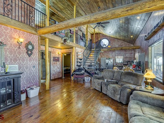 - Vaulted Ceilings, Ceiling Fans, Fireplace- Wood, Wood Burning Stove, Flooring- Hardwood