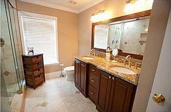 here is Granite and premium stainless steel appliances in kitchen, Crown molding / Wainscoting / Beadoard throughout, Plenty of storage with Custom Bookshelves with Granite and TV shadow box in Living Room. Bathrooms have Travertine Tile and Granite in them, Master is awesome and the bathroom has an oversized shower (3 heads) and custom his/her cabinets and don't forget about the HUGE closet...2 car garage with additional storage roomBackyard with Play set