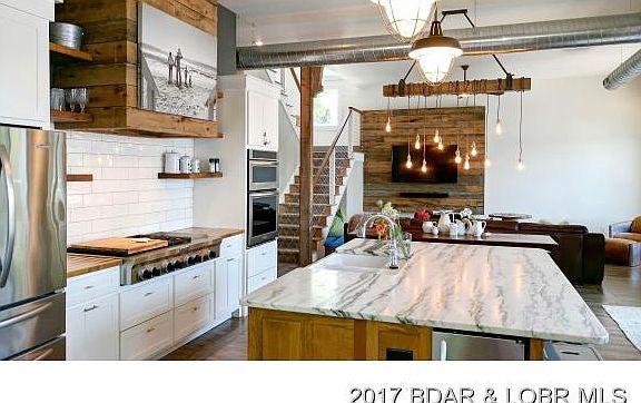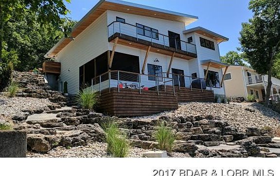 BORED of the same old âsquare boxâ Lakefront home these days? Whereâs all the style gone that makes a Lake house so great? Thatâs exactly why this family designed this home from the ground up! Quality built with custom cabinetry, Granite/Marble, Anderson windows, radiant floor heat, cable railing, cedar beams, reclaimed wood accents, antique barn doorsâ¦.the list goes on & on. Extremely functional floorplan with 4BR (2 are Private Suites) & an additional Bunkroom that will be a hit with kids & adults alike! Double glass doors off the kitchen lead to a screened-in Porch & Patio, surrounded by limestone walls & walkways to the newly built dock with cove protection & AMAZING view! Simply put, this is a modern masterpiece.