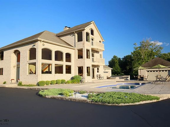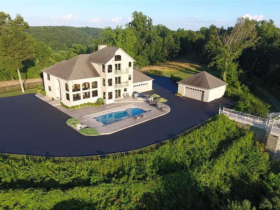 Truly breathtaking panoramic views are the hallmark of this unforgettable property. Three floors of huge, sun-drenched rooms with stunning views, plus a fully finished lower level for entertaining. This home isn't short on anything, with 4 suites (one on first floor), possible 5th bedroom in basement, over 5,500 finished SF, two large laundry rooms, two oversized garages, and an in-ground pool, hot tub, and gazebo with views for miles and miles. Rear deck with meadow views, heated floors in lower level and