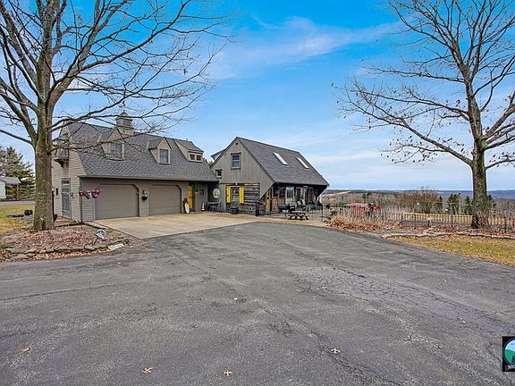 One of a kind custom built home with views for miles! This unique combination of modern construction mixed with salvaged and repurposed historical materials from around the area make this a must-see home. Come inside off the fenced in brick patio courtyard and enjoy the open concept kitchen/dining/living/sunroom floor plan for multiple entertainment options. A full and private primary en suite complete with a private deck provides seclusion and short-term rental options. There are two additional bedrooms complete with their own full bathroom and a second observation deck! The property is complete with a paved driveway, raised garden beds, fruit trees, an insulated oversized attached 2 car garage and a newly constructed 30x40 secondary garage with its own entrance for all the grown-up toys. Too many amenities to list so look today and you can see this impressive property/VIEW in person!
