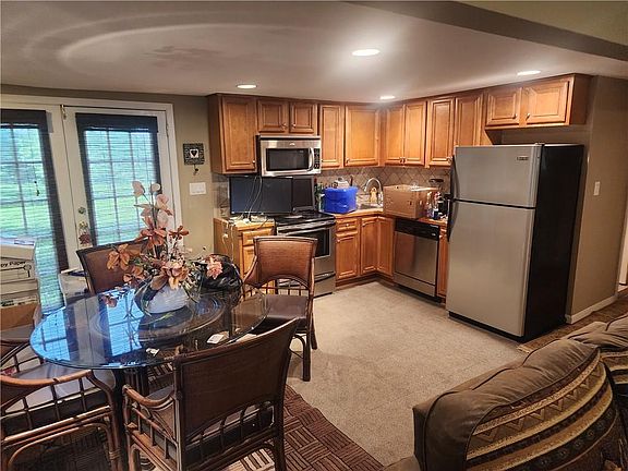 2 bedroom ranch with newer cabinets and floor coverings. Fully furnished with appliances and furniture. Move-in ready! 2 outbuildings and lots of trees!