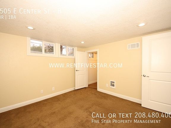 1 Bedroom Apartment Near Idaho State University! Live just minutes from Idaho State University in this spacious and updated 1 bedroom, 1 bathroom apartment! Located in the heart of the University Area, this charming unit features a large living room and bedroom, with brand-new carpet installed in August 2024 for a fresh, modern feel. You'll love the stylish kitchen, complete with a refrigerator, stove/oven, dishwasher, and sleek luxury vinyl tile (LVT) flooring. The walk-in closet offers generous storage space, while gas heating and central air conditioning ensure year-round comfort. Perfectly situated just blocks from ISU, this apartment also offers easy access to I-15, Portneuf Medical Center, Bonneville Park, and moremaking commuting and exploring the area a breeze. Don't miss out on this ideal blend of comfort, convenience, and locationschedule a tour today! Gas Forced Air Heating Visit Our Website Rentfivestar.Com Washer And Dryer Hookups