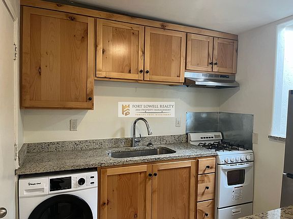 Rare Find...Beautiful 1 Bed Casita with Large Yard AND WASHER/DRYER! ~Tile Flooring Throughout ~ High Wood Beamed Ceilings with Ceiling Fan ~ Galley Kitchen with Stainless Steel Appliances, Granite Counters, & WASHER/DRYER in Unit! Large Master Bed w/Walk in Storage Closet~ Large Enclosed Yard ~ Pet Friendly! $50 for Water/sewer trash. Equal Housing Opportunity. Fort Lowell Realty & Property Management.