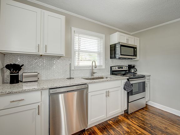 Set back from the street, this completely furnished and newly renovated Carriage style house is waiting to be your private home away from home. This cute house has tons of natural light, solid wood floors, and a full size two car garage complete with a washer and dryer. You will feel right at home in the beautifully designed kitchen, which features granite counter tops, a beautiful tile backsplash, and is outfitted with all new appliances. Included are all the dishes and utensils you need to make dining at home easy and stress-free. Price tiered for rent- the longer you stay, the less you pay! $2,000/mo for 1-2 months, $1,900/mo for 3-11 months, and $1,800/mo for 12 month and longer lease. Get your daily Vitamin D with the natural sunlight pouring in all the windows. This house will make you feel like you are on vacation! Relax on the couch and enjoy the large tv, or have a good nights sleep in one of the two comfortable bedrooms when you are not busy working. The bathroom has plenty of lighting, a large linen closet, combination tub/shower, and updated fixtures. The garage has two garage doors, which allows you to either store all your belongings and a car, or two cars. Located in safe and comfortable Hixson you will feel secluded and relaxed, while being close to all the local stores, mall, and hospitals. Take the stress out of travelling while living in a beautiful home that you can call your own while you enjoy your time in Chattanooga! Non-smoking house with no pets allowed.