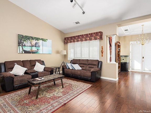 This home in Seven Oaks is within walking distance to Reagan Elementary and Deer Peak Park. The cobblestone front courtyard is inviting as you walk up to this amazing home with an entry that features modern tile and stunning pecan wood flooring. This spacious 2,760 sq ft split wing floorplan has room for entertainment with a formal living room, dining room with French doors leading to the back patio, separate family room, fireside lounge with an open kitchen highlighting French inspired brick flooring and plenty of storage space. The master bedroom has a sliding glass door that opens up to the pool area. The exterior showcases a refreshing gated pool, outdoor party lighting, a natural gas barbeque, and an oversized garage with extra shop workspace. Ask me about the seller offering 1% towards buyers closing costs! Contact your favorite agent today and schedule your private showing before this one is sold!