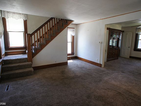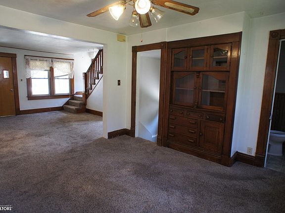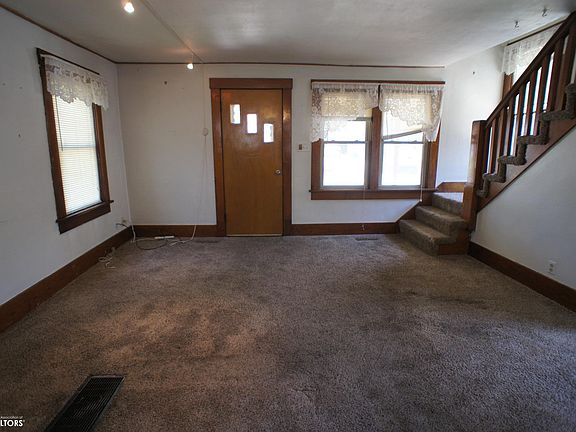 Great starter home or rental property in a central location. 2 good sized bedrooms and full bath up. Open concept kitchen, dining room and living room on main level. Family room, laundry room and shower in basement. Kitchen appliances stay with house. Newer vinyl windows and siding. New water heater. 100 amp breaker box. Detached 24 X 40 garage with shop in the back.