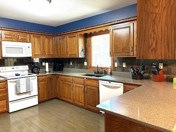 Tucked away on a quiet cul-de-sac, this charming 3-bedroom, 2-bath home offers both comfort and functionality. The main floor features a spacious kitchen offering quartz countertops, a wood floor, and a convenient breakfast bar—perfect for morning coffee or catching up on emails. Off the dining area you will find a stunning sunroom with large windows, wood flooring, and a cozy gas fireplace providing the perfect space to relax year-round. A spacious living room, full bath, 2 bedrooms and a primary bedroom and bath complete the main floor. The lower level adds even more living space with a family room showcasing a wood-burning fireplace, an additional room (non-egress), laundry area, and mechanicals. Step outside to a large backyard retreat, complete with a patio, hot tub, shed, firepit, fruit trees, perennials, and ornamental grasses—a true gardener’s paradise. This home is ready for you to move in and enjoy!