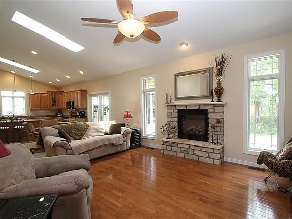Incredible custom built builders home offers numerous upgrades including Andersen windows, hardwood floors, solid interior doors, tankless water heater & more! Open floorplan features fireplaced great rm with cathedral ceiling & French doors into 4 season sunrm. Gorgeous kitchen with maple cabinetry, granite tops, walk-in pantry, island breakfast bar w/veggie sink, SS appliances & skylight. Convenient main floor laundry & 3 stall garage. Fireplaced master suite includes tray ceiling, his & her WIC, whirlpool & tiled shower. Finished lower level 12 for teen suite or entertaining.