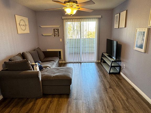 Beautifully updated 2-bedroom, 1-bathroom condo located on the second floor of a quiet two-story building. This home features a spacious layout with dual sink vanity, a large covered patio, and an in-unit laundry room equipped with a smart LG washer and dryer. Enjoy modern comforts with A/C, ceiling fans, and a dedicated storage unit. The community offers a swimming pool, hot tub, and additional laundry rooms for convenience. Utilities & Fees: WiFi, Water & garbage included Tenant pays electricity Pet Policy: Pets allowed with approval Additional pet deposit: $550 Pet rent: $25 Breed/size restrictions may apply please inquire Smoking Policy: Strictly non-smoking unit (including patio and common areas) Parking: One reserved covered parking space Guest parking available onsite Highlights That Make This a Great Choice: In-unit washer & dryer Large private patio Pet-friendly Access to pool and spa Storage included Water and garbage paid