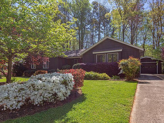 Located in the heart of Cary, this single-story home boasts an inviting layout spread across 1866 sq ft, featuring 4 bedrooms and 2 full bathrooms. Move-in ready with a freshly painted interior, complemented by new carpet. The family room has a mid-century modern vibe with high ceilings and large windows that usher in lots of natural light. The large kitchen with a generous island, tons of cabinets, quartz countertops, and spacious breakfast area is great for entertaining friends and family. Don't overlook the practical upgrades such as a newer roof 2022, HVAC system installed in 2017. If you are hoping for privacy, you will love sitting on your screen porch looking at the azaleas on your .45 wooded lot. The detached garage can house your car or your workshop...you decide. The lack of an HOA adds a layer of freedom to your lifestyle, even welcoming your chickens into this serene setting. Location is key, and this property does not disappoint. Enjoy the convenience of being within walking distance to Annie Jones Park and Scottish Hill Pool, not to mention the proximity to Apex Community Park. Trader Joe's & Costco are a short drive away, ensuring your pantry is always stocked. Don't miss the opportunity to make 1505 Laughridge Dr your new address.