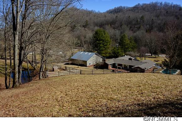 Special find 30 min to AVL. Granite island & breakfast bar, kitchen skylights, hand-scraped wood floors, 3 gas FP's & 2 courtyards. Almost 14 acres of diverse landscape including approx. 6 acres w/ hemlock & locust split rail "woven-wire horse fencing". 2 yr old pool w/ 20 yr warranty. Fenced area includes creek, pond, workshop, private dog park w/ heated cedar doghouse, trails & open pasture. 2 car att. garage + 1700 sqft detached w/ fin. office