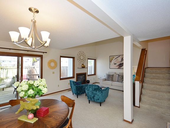 Spacious townhouse in one of Ames' most convenient and desired locations. Walking distance to ISU campus, Vet Med, Research Park, and Jack Trice. CyRide stop just a short walk away. Highway 30 on-ramp one mile away. With large square footage, this townhome lives big and inviting. Open floor plan featuring vaulted living room ceiling and fireplace. Dining area perfect for entertaining, looks out into private fenced yard and deck. Kitchen is bright, cheery, and convenient. Large upper-level owner's suite is 20'x14' with walk-in closet. South-facing windows provide light all day long. Ample space to accommodate a home office/study area. Large bathroom with double sink vanity, 2nd bedroom, and landing complete the upper level. Finished lower level has plenty of square footage to become your 3rd bedroom, office, or game room with pool table. Laundry and plenty of storage in the basement.