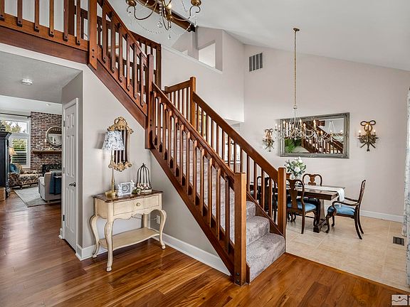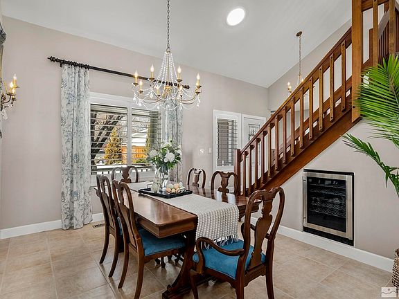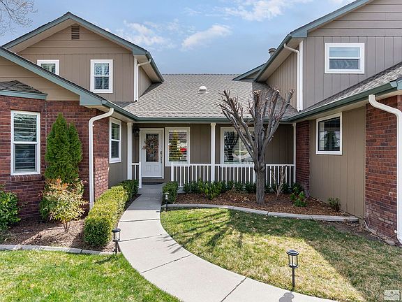 Welcome to this charming 3 bedroom plus office custom home with amazing curb appeal in the established and desirable Monte Vista neighborhood of west Carson City. With the primary bedroom and office on the main floor, the home lives like a single level, but has plenty of room for family or guests upstairs. Enjoy evenings on the deck in the backyard oasis, or meander into historic downtown Carson City, which is just minutes away., This home has fresh exterior paint and is meticulously maintained both inside and out. The great room has a stunning floor to ceiling brick fireplace and soaring ceilings with windows that let in the natural light. The kitchen is open to the great room, and has been updated with granite slab and stainless appliances. Upstairs, you'll find two bedrooms, a full bath and a huge second family room that could be used for movies, a playroom, exercise studio, craft room, or whatever fits your lifestyle. While the interior is warm and inviting, the exterior is equally as beautiful with mature landscaping, including grape vines, peonies, roses, raspberry bushes, and even a Koi pond with a turtle named Bob, who stays. The covered patio is ideal for relaxing outside and includes a built-in outdoor bar area for serving up your favorite food and drinks. In the back corner, amongst the blooms, is a charming pergola with a swing, and off the primary suite is another patio that holds a private and fully operational hot tub that also stays. And don't forget to look on the side yards - there is an expansive garden for your own personal farmers market, and a storage shed to hold all your gardening tools. The garage is oversized (almost tandem), and fits a truck with no problem. Lightly lived-in homes with this kind of pride of ownership don't come on the market very often!