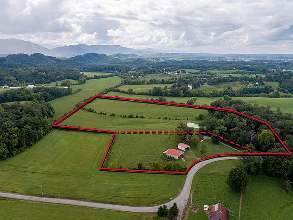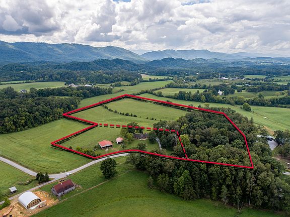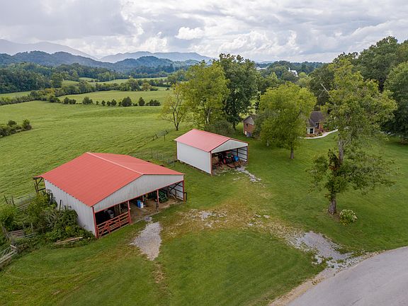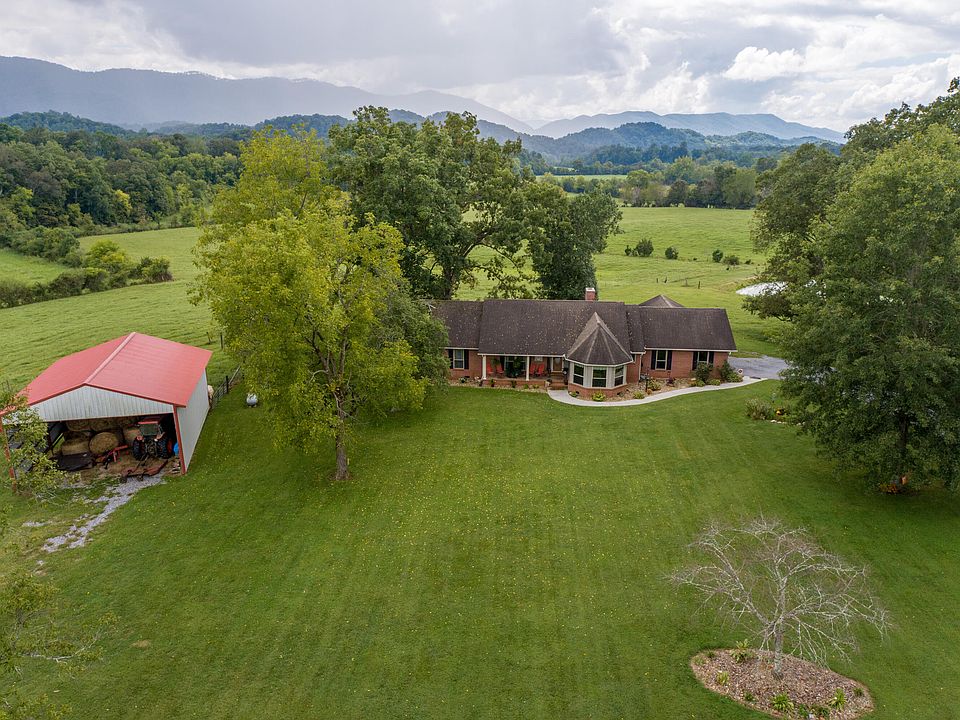 Welcome to your 25+ ACRES of FULL MOUNTAIN VIEWS GALORE! 2000+ SF main home is all brick with covered front porch, back deck with breathtaking views, and over-sized 2 car side entry garage. The property is meticulously maintained and includes 2 BARNS (one is 30x40 and built in 2018; second is 40x60 with saddle room and loft area), CREEK, and POND! This a fully functioning cattle farm but would also be perfect for someone looking for one level living with usable acreage and views of the Smoky Mountains. Interior features include new engineered 3/4 inch hardwood flooring, vaulted ceiling living room with wood burning stove, owner's suite with walk-in shower, double vanity, and walk-in closet, kitchen w/ breakfast room & stainless appliances. Windows were replaced in 2013.