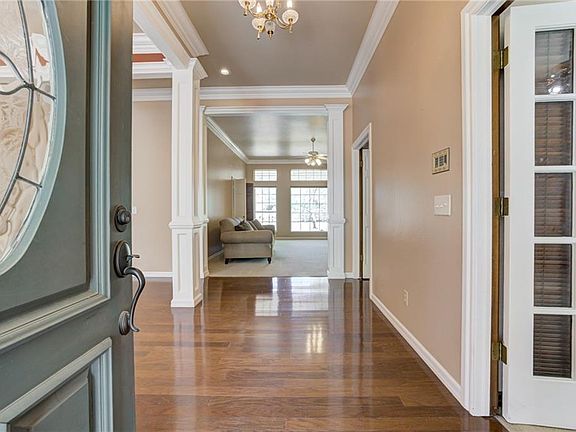 Amazing home, great location!! Open floor plan with heavy crown and baseboards thru-out. 4 bedrooms 3 1/2 bathrooms, designated office with closet, 2 oversized living areas one w/fireplace and stained built in bookshelf. Large master suite with jacuzzi tub. Additional bedrooms are nice sized. Kitchen has stained wood cabinetry, lots of storage space, center island, canned lighting, pull out drawers in the pantry, skylight & breakfast area. This home has a large laundry room with skylight, lots of cabinets and countertops, attic has extra decking from one end to the other, radiant barrier decking for added energy efficiency, deep roomy storage in hallways, den and solid core interior doors. Absolutely amazing backyard with covered patio and gas line hook-up. Huge circle driveway with side entry garage. Don't miss out on this one level house in one of Edmond's most popular neighborhoods with beautiful walking trails and ponds!! Give us a call to schedule your showing!!