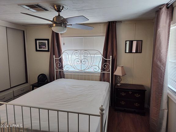 This charming 3 bedroom 2 bath home is move in ready and feathers New AC and hot water heater in 2022, updated appliances with new washer and dryer, 2 covered parking spots and 2 sheds with workbench for your hobbies. New double pane windows in the in the living room and kitchen and the roof has a fresh covering on it. And that is just the house. the park offers clubhouse with pool and barbecue area. close to 202, 101and the 60 to get you wherever you need to go with ease. This one wont last long so come see it today.