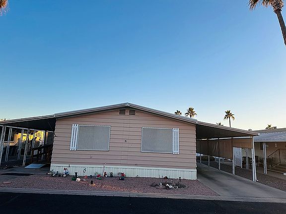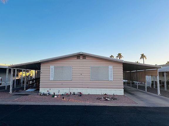 Looking for an affordable home with plenty of potential in a 55 and over community? This spacious 2-bedroom, 2-bath double wide trailer is waiting for you! Features: Bedrooms/Bathrooms: 2 bedrooms, including a large master bedroom. 2 bathrooms – one currently set up with storage in the shower. Living Spaces: A spacious living room perfect for relaxing or entertaining. Beautiful deck on the patio side, complete with handicap accessibility. Appliances Included: Refrigerator, deep freezer, washer, and dryer are included. Parking & Storage: Carport accommodates up to 2 cars. Two sheds on the backside of the home – one with electricity (both need some repairs). Additional Details: The home is priced $50,000 as is and does require some work. This is a short double wide trailer. Buyer must pass a $50 application process through park management. Don’t miss this opportunity to own a home with great features and room for your personal touch. Schedule a viewing Lot Rent $715, utilities range from 100 to 250, water sewer trash $70 ish total.