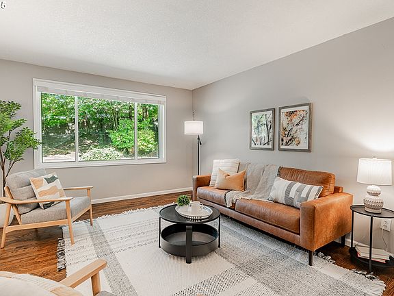 Welcome to 1505 NW 118th Ct, a beautifully maintained 3-bedroom, 2-bath home in a peaceful Portland neighborhood that offers the best of both worlds—tranquil living with cafes, gyms, parks, grocery stores, and major retailers all within walking distance. Situated on a spacious lot with mature trees, the backyard becomes a shaded, private retreat—perfect for outdoor gatherings or relaxing in cool comfort, even during summer's hottest days. The front yard features tidy landscaping and great curb appeal that sets a warm, welcoming tone. Inside, you’ll find a bright, mid-century modern interior with vaulted ceilings, oak hardwood floors, and abundant natural light. The open layout includes a stylish living room with a wood accent wall and direct access to the serene backyard. A modern kitchen with ample cabinet space and updated appliances serves as the heart of the home, ideal for cooking and entertaining. The private primary suite features custom hardwood shelving, a luxurious walk-in shower, and high-end tile finishes. With three bedrooms, two bathrooms, and generous living spaces throughout, this home combines comfort, design, and convenience in a truly unbeatable location.