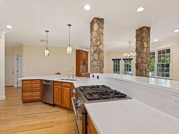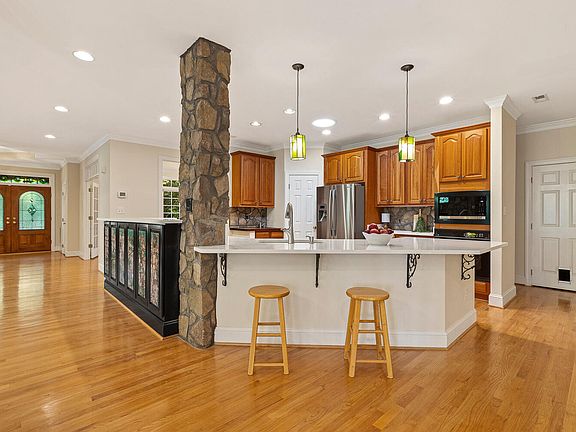 Gorgeous brick walk-out basement home on 1.69 very private wooded acres in highly sought-after River Oaks! The spacious side-entry garage and classic curb appeal are complemented by modern updates including a 2021 roof, 3 HVAC units (2024, 2022, 2011), and Ring security cameras. Inside, the home showcases hardwood floors throughout the main level, and electric remote-controlled EcoSmart window shades in the office, dining room, and primary bath. The gourmet kitchen features 2 ovens, new quartz counters, stainless appliances, a Solatube skylight, center island, veggie prep area, and walk-in pantry. Relax in the family room by the stone-surround fireplace. The main-level owner's suite offers a spa-like bath (remodeled 2022) featuring Hanex solid-surface shower and counters, a free-standing tub, walk-in shower, and private deck access. Additional features include a formal dining room, home office with built-in storage and bench, and two spacious bedrooms sharing a Jack-and-Jill bathroom. The beautifully finished, walk-out basement offers a wet bar with dishwasher, bonus room, a full bath, flex rooms, room suitable for wine storage, workshop with built-in benches and plenty of storage has endless possibilities for hobbies or maybe home business. Whether you're a nature lover, being in it or just enjoying the view, or a gardener enthusiast you will love the serene picturesque outdoor living which changes with the seasons. This home offers a screened porch with luxury vinyl floors, an expansive tiered deck, gas line for grill, spacious lower covered patio wired for hot tub, fenced yard, and irrigation system. Enjoy community amenities: pool, clubhouse, tennis, and pickleball, with easy access to area parks, Falls Lake, WakeMed North Hospital, shopping, US-1, and I-540! For those who love a quick stroll to restaurants, Brixx wood-fired pizza, Mamacita (Mexican cuisine), Bowlba Cafe, and River Pub are nearby.