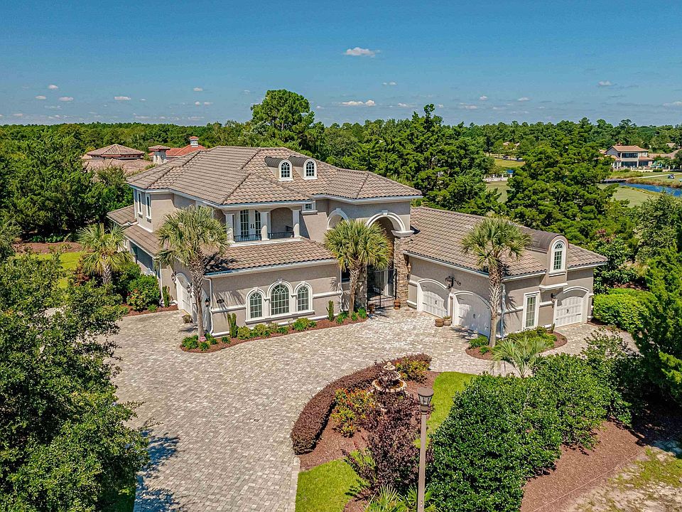 This luxurious & beautifully appointed home on an oversized private .63 acre golf course lot overlooks hole 13 on the infamous & exclusive Grande Dunes Course and was created with such thoughtful design both inside & out. The guard gated Grande Dunes Is an Intracoastal Waterway & golf community where amenities like the Private Oceanfront Ocean Club membership offer exclusive beach & pool amenities, oceanfront dining with sunrise & sunset panoramic views of the Ocean. The beauty of this community is truly breathtaking. This home is situated for privacy on a cul de sac. Your outdoor oasis includes a customized Gunite saltwater system pool with spill over spa, covered wood ceiling outdoor kitchen with the stone fireplace making your outdoor living space luxurious, private & truly one of a kind. Professionally & Locally built/designed; This home has been newly renovated through the same original local custom builder with new systems for the highest energy efficiency & function. State of the art mentionables are: All new Trane 18-seer Energy Efficient AC / Heating system with humidity control, Wi-Fi Thermostats, Trane Mini Splits for a 5 car garage including new garage doors that are fully insulated with completed epoxy floor finish. An Entire Home gas Generac Generator is installed, Tankless gas dual new Rinnai water heaters, customized pet washing station, entire home water purification system, & a remote home lock & security system. The interior of this home offers many luxury upgrades brand new at every turn. As you enter; you are met with so much natural light from the array of arched windows, limestone fireplace and ultra-high ceiling. The custom molding, arched doorways, Imported stone and elegant three fireplaces; no expense was spared in the design of this home. This truly can’t be duplicated. Exquisite window treatments professionally installed including plantation shutters, paint scheme choices & wall coverings all chosen with love, comfort and function in mind to enjoy in your home. The flooring includes travertine tile & hardwoods. There are customized doors, gorgeous light fixtures, detailed finishes throughout the home all chosen for function & only of the highest quality. The kitchen Quartz Countertops, Customized Cabinetry w/ glass doors, beverage cooler, & gourmet Thermador Appliances; all provide beauty & functionality for daily use with plenty of workspace to prepare your meals to enjoy for dining. The first floor owners suite & primary bath is nothing short of breathtaking including dual closets & 12X4 Tile shower with a rain shower fixture. The laundry room area has a sink, including washer/dryer/additional storage. The upstairs has a common area, three bedrooms, two balconies and two bathrooms. An absolutely amazing feature of this property is the Pool Cottage. Fully renovated with its own luxury style kitchenette, bathroom & tile shower, private entry/exit with garage access make possibilities for use absolutely endless. The double back French doors open to direct private access to the outdoor pool area & golf course view. There is even an additional upstairs bedroom/flex room that can be used for many options as it is heated/cooled & over 200 sq.ft. of space all with natural light provided from the gorgeous window. Property is situated on a meticulously landscaped lot that is professionally maintained. New sod was added. The trees,palms & blooming flowers/bushes throughout the property with lawn irrigation ensure ease & care year round. No expense was spared on the custom design. This home is truly a unique opportunity; constructed with love & thoughtful design to blend with our coastal surroundings all while maintaining integrity, ensuring many memories are meant to be made. It truly is special and too many luxurious features to mention. Experience for yourself. Schedule your showing today as this home will not last long! SQUARE FOOTAGE IS APPROXIMATE NOT GUARANTEED. BUYER RESPONSIBLE FOR VERIFICATION.