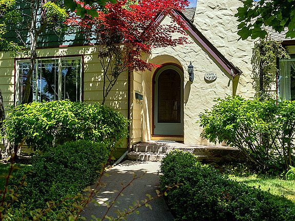Absolutely splendid circa 1930's Tudor style English Cottage with classic charm! Featuring 4 bedrooms, 2 baths, spacious living room, with the dining area off the gourmet kitchen with solid surface counters, breakfast nook, & big butcher block bar for food prep. There are 3 bedrooms and bath on main floor, with the large master suite upstairs, nicely remodeled and tiled bathroom with tub, shower and make up vanity. Huge laundry area downstairs with storage galore, even a cool wine closet. Gas heat and A/C, brand new roof on home, new roof on 2 car garage 2019. Lovely colorful landscaping with roses and perennials, private courtyard, hot tub and grassy fenced area with fruit trees, and garden spot. Perfect location on the Terrace!