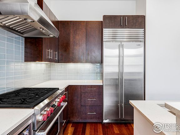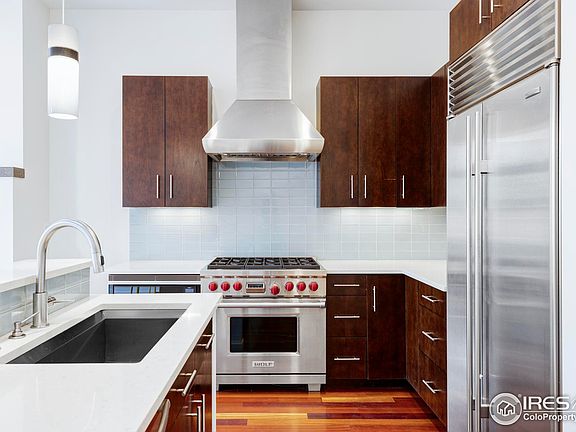 Make your home at the epicenter of Downtown Boulder's most exciting amenities in this gorgeous one-bedroom, two-bathroom condominium featuring upscale finishes, private outdoor space and parking just inches from Pearl Street's outstanding shopping, dining and nightlife. Inside the 965-square-foot home, hardwood floors usher you into the spacious and bright main level. In the living room, you're invited to relax by a linear gas fireplace flanked by built-ins or step out to the charming patio for al fresco dining. The exceptionally well-appointed kitchen impresses with contemporary cabinetry, beautiful countertops and glass-tile backsplashes. Enjoy a fleet of upscale appliances, including a vented Wolf six-burner range and microwave, a Sub-Zero refrigerator and a Bosch dishwasher. An oversized powder room and a laundry closet with a Miele washer and dryer complete the lower level. Head upstairs to discover a full-floor primary suite featuring a king-size bedroom that opens to a large balcony with stunning park and mountain views. The extra-large walk-in closet tames even the largest wardrobe, while the en suite spa bathroom features a large soaking tub/shower and a wide double vanity. Central HVAC and a bedroom ceiling fan provide year-round comfort in this move-in ready Downtown home. Enjoy lock-and-leave living at 1505 Pearl Street, a modern condominium building offering an elevator, underground heated parking garage, secure entry and storage. Located on the sunny side of Pearl Street, this Downtown home is just inches from the pedestrian mall, offering front-row access to restaurants, local boutiques, coffee bars, the Avanti Food Court, Rosetta Hall, Boulder Theater and more. Easy access to the CU campus, famous Boulder outdoor space and transportation complete this fantastic home.