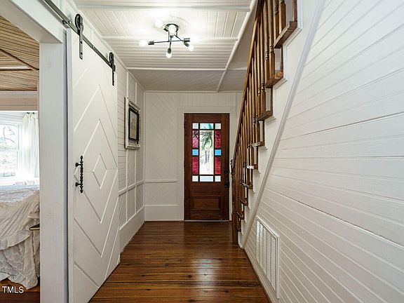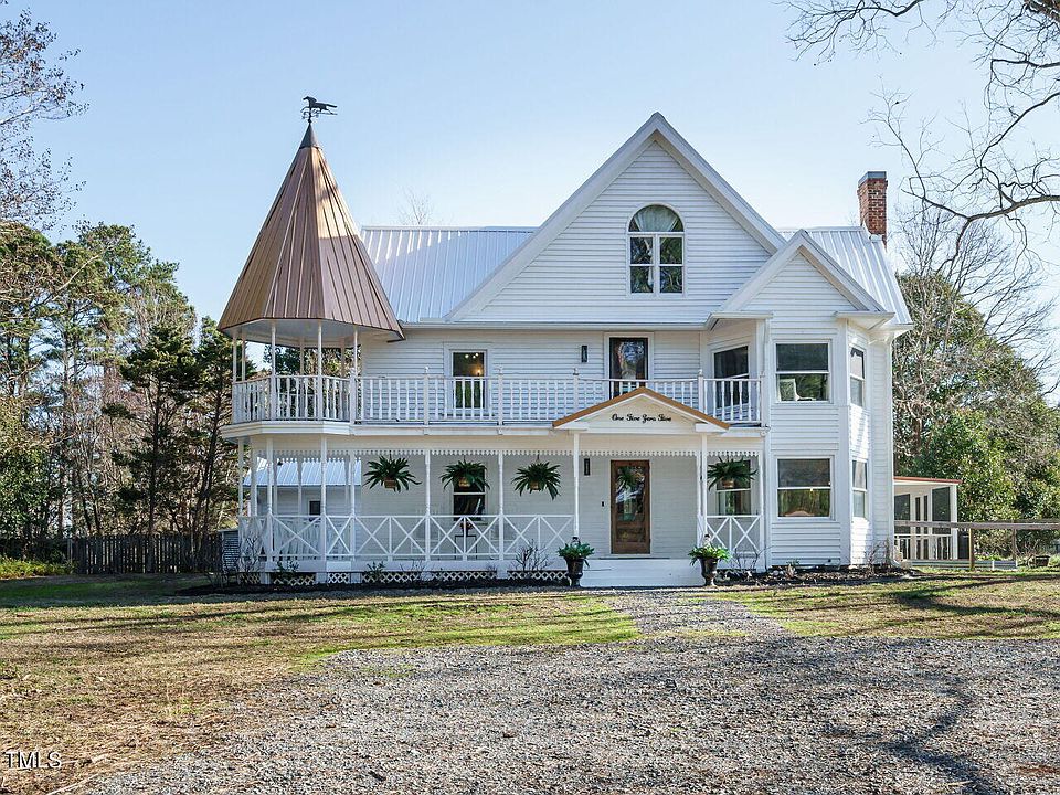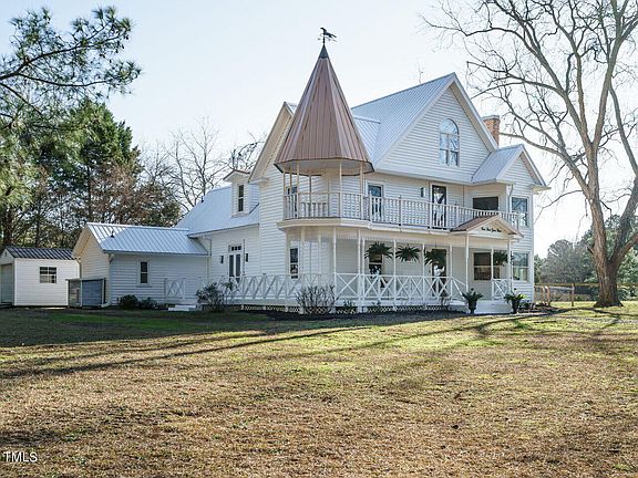 All of the rustic charm you expect in a home built in the late 1890's with the modern touches you will love. This amazing farmhouse retreat is perched on 1.66 acres and features so many wonderful updates while preserving the unique touches of a historic home. You will find heart pine floors, tongue and groove walls and ceilings. Primary suite is on the main level with separate closets, charming bath with claw-foot tub, walk-in tile shower, double vanities. Office/flex space will make work from home a delight. Open and bright family room has new laminate flooring and access to beautiful screened porch. Dining room has gorgeous stained glass. Chef's kitchen features Zline gas stove, tile backsplash, custom-made island with breakfast bar. Built-in china cabinet in kitchen stays with the home. Superb storage in the mudroom with laundry area, half bath, utility sink and access from backyard. Second level has 2 gorgeous bedrooms plus a bonus room. Hall bath has been updated to perfection. This home has a versatile floor plan with plenty of space to live, work and play. There is a walk-up 3rd level currently attic storage space. The outdoor living will not disappoint here. Enjoy the wrap-around porch, roof top deck overlooking backyard and adjacent farmland. Walk up to the spire for lovely view of this urban homestead. Plenty of gardening space, raised beds, fruit trees, pecan trees. Fenced yard with 19.5' gate and 2 other access gates, detached 24x12 garage/workshop. This rare find is conveniently located just minutes from US1 with easy commutes to So Pines, Pinehurst, Triangle, Fort Liberty and more. Membership to community pool and amenities available. List of updates located in documents.