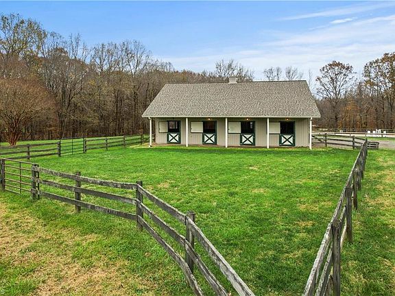 Welcome to the premier equestrian area in Davie County! This 24 plus acres is the perfect setting for peaceful equestrian living. The 5 stall custom Morton barn is conveniently located to the house and arena. The barn has dutch doors and fenced area for a dry lot with easy access for the horses. Covered barn overhang is ideal for trailer parking and equipment storage. The barn has a new roof and exterior paint. The pastures are fenced and cross fenced with frost free hydrants and have bridle paths for trail riding or conditioning your horse. The barn includes hay storage, a climate controlled tack room and bathroom and a hot/cold wash bay. The farmhouse has recent updates including a one year old roof, newer systems,new paint inside/out, new kitchen appliances,some new flooring and carpet and features a primary suite on the main level. The eat in kitchen overlooks the heated pool for hours of summer enjoyment just steps outside the back deck. This farm is waiting for finishing touches.