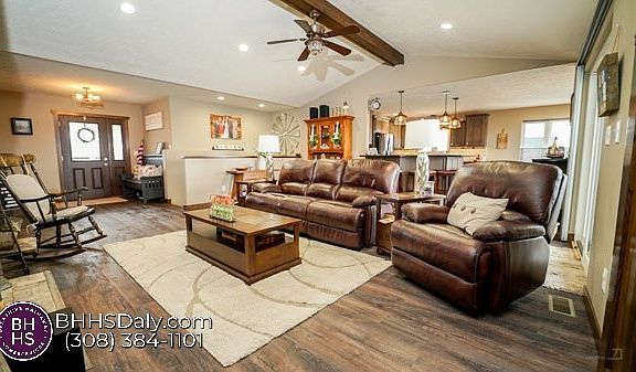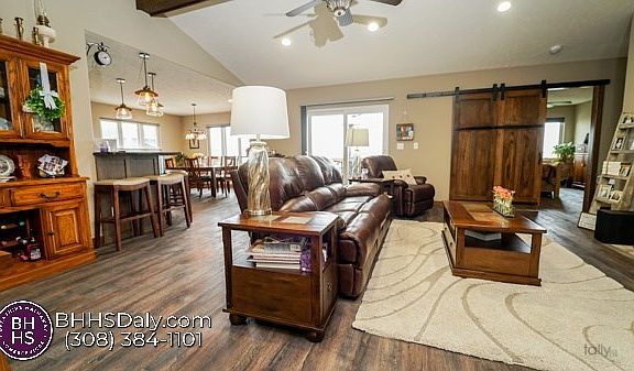 Beautiful Custom home. 3 bds. 3.5 ba. 3 gar. Open kitchen. Granite countertops. Vinyl plank flooring throughout. Walk-in master shower. Main floor laundry. Wood burning fireplace. Wet bar in the basement. Projector stays. Sprinklers on well. Pad for camper. Camera system outside, not inside.