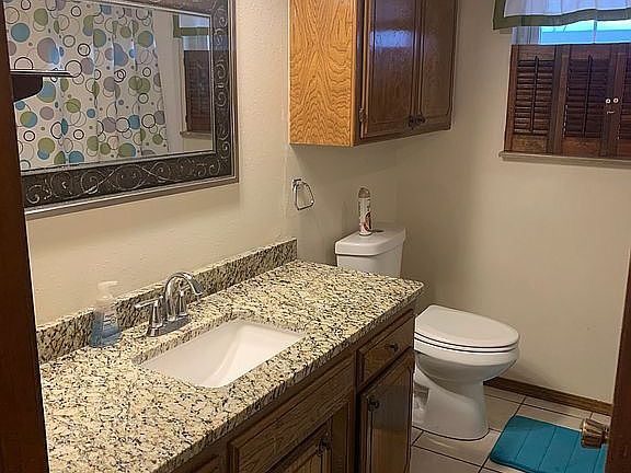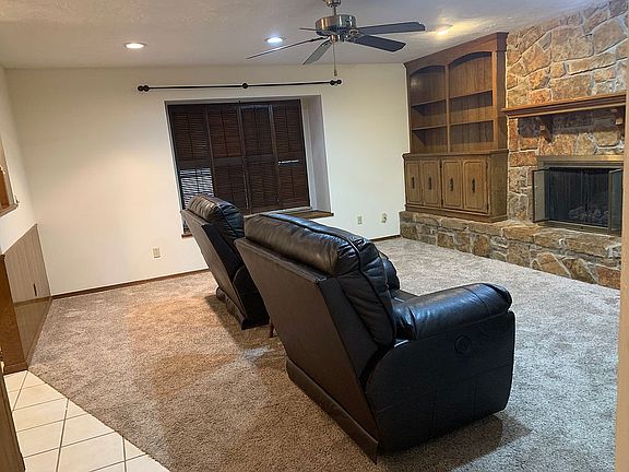 Well maintained home in quiet neighborhood within walking distance of schools, track, playgrounds and walking trails. Brand new roof with fresh paint inside and out. 2 heat and air units heat and cool the house with one being replaced 6 months ago. Formal living room has a large bay window, stone fireplace with wood mantle and built in’s surrounded by a gas log fireplace with remote control thermostat and push button start. All bathrooms were fully remodeled 4 years ago along with new carpet in living room and bedrooms. All other floors have tile. Master has attached full bath with 2 large closets (one walk-in with built in hanging racks and baskets). All other bedrooms have large closets. Large laundry room with sink and space built under countertop for small refrigerator which is perfect to hold drinks as the covered back patio is right outside. There is also a large utility closet off the laundry room with built in shelving and plugs to hold all cleaning supplies and vacuums. Kitchen looks into dining room and den and has large wall of solid wood built in cabinets as well as large walk in pantry with built in shelving. There’s a mud room with built in storage off the kitchen going to oversized 2 car garage. We had a full sized fridge, large gun safe and storage racks in garage and still had plenty of room for 2 full sized vehicles. Hanging storage in front of garage will stay with house. There is also a storm shelter for 4-6 people in garage floor. Back bedroom has attached 1/2 bath which could work as mother in law plan or is perfect for guests to use after coming in from outside. There is a large bonus room with skylights and vaulted ceilings that could be used for game / exercise room or additional bedroom as it also has a full closet. Backyard is fully fenced in with covered patio with covered grill area and plenty of room for entertaining. Large concrete space off patio makes perfect place for hot tub. An 18x20 insulated, heated and cooled shop with walk through and overhead garage door makes for a separate office or work space. There is also a 20x25 shop with overhead garage door with opener that can be accessed by double gates leading to paved alley that makes for easy extra parking or toy storage. There is also an enclosed lean to for more storage off smaller shop for lawn equipment etc. Three car wide driveway in front for plenty of parking space. House has been wired for security cameras and alarm and is plumbed for whole house water filtration / water softener system.
