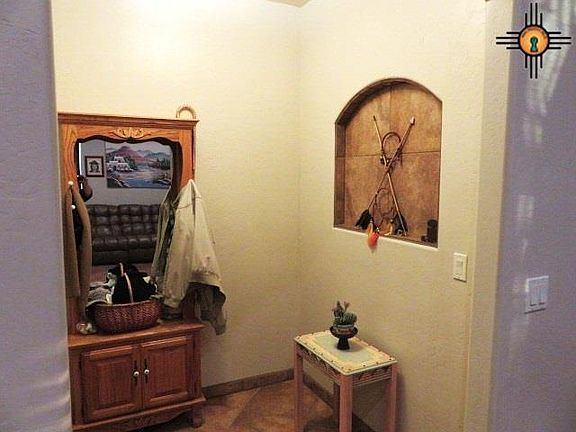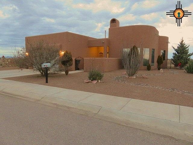 HIGH DESERT PROPERTY. Beautiful southwest style house located southwest of Deming. Not your typical floor plan. This house features three bedrooms and two bathrooms. Master bath has a jet tub, separate shower, double sinks, huge walk in closet. Master suite opens to the patio. Open floor plan with kitchen dining and living areas. Nice kiva gas log fireplace in the living room. Small dining area next to the kitchen with exit to the covered patio. Patio has fully functional kitchen area with wonderful view. Kitchen has pantry, island counter with the sink. Lots of cupboard space. Plenty of lighting through out the house. Front room has large windows to watch those amazing New Mexico sunsets. Back yard is surrounded by a rock wall. Sound system through but needs some speakers replaced. Double pane tinted windows. Small entry. Seven skylights. Built by Robert Jones from Las Cruces is the builder for this superb custom house! Schools are within one block. Price to sell! This is a must see!