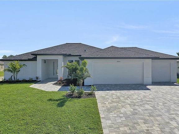 STUNNING, NEW CONSTRUCTION, GULF ACCESS 4 bed/2bath with a 3 CAR GARAGE and GORGEOUS POOL! Enter through your double doors into your large, bright foyer. Large, PLANK tile throughout, sliders lead to stunning view directly out to the pavered lanai and crystal clear, bright blue pool with UPGRADED PICTURE FRAME pool enclosure! Kitchen boasts upgraded wood cabinets, GRANITE countertops, stainless appliances and eat-in breakfast bar. Large soaking tub and dual sinks in the master bath! THREE SETS of IMPACT RESISTANT SLIDING GLASS DOORS and a POOL BATH allow for ample lighting and easy access out to the pool area for your next barbeque! PERFECT VACATION RENTAL INVESTMENT OR Your own Paradise!