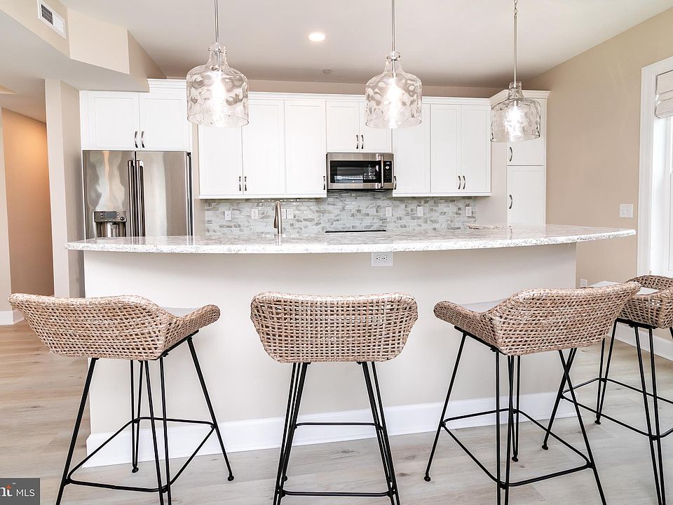 Absolutely Stunning FURNISHED Villa Move in ready in Ocean City! Established Rental INCOME!! This Move in Ready Villa showcases an open concept perfect for entertaining! LVT through the main living areas set the tone for the tastefully designed space. Let's get cooking! Stainless Steel Appliances, White Kitchen Cabinetry with Soft Close, Quartz Countertops, Recessed Lighting, and an Electric Stove make cooking and cleanup a breeze! With so many amazing places to enjoy your meal, Morning Breakfast/ Brunch in the Dining Area or Kitchen Island, Relax with Morning Coffee on the Deck overlooking the Beautiful Bay Views. Time to unwind and Snuggle up for a movie by the Fireplace after a long day soaking in the sun. Primary Suite Boasting Walk in Closet, En - Suite with Soaking Tub and double vanity. This sprawling Villa Showcases 2 Other Bedrooms and 2 Full Baths. Not that you should ever need to leave this amazing Space but if Sunshine is what you are looking for... Take in All Ocean City has to Offer with just a short Walk to all the Major Attractions. Headed back from the beach and don't want to bring the sand inside? Rinse off in the Outdoor Shower. Covered Parking to keep your car cooler on those hot summer days! Welcome Home to Son Ray Villas!