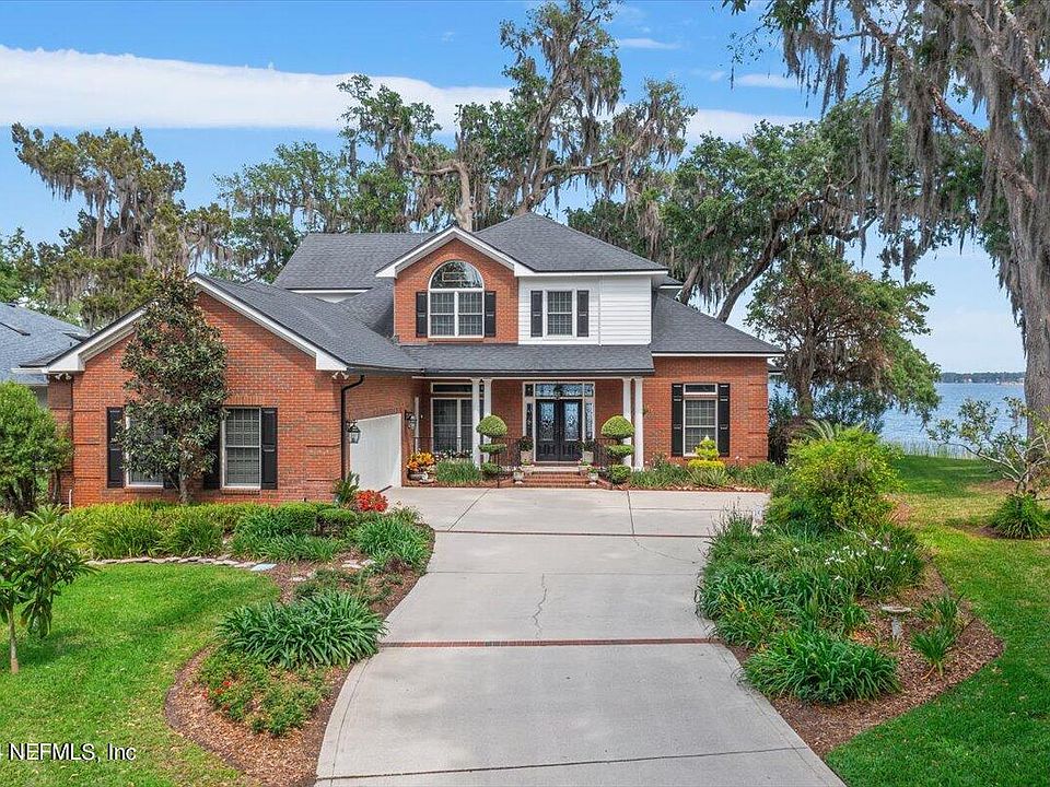 Nestled in a tiny enclave of only 5 homes, this expertly designed and custom-built one-owner waterfront paradise has everything you want. You'll find luxurious appointments at every turn as you marvel at the inspired floor plan that lends itself perfectly to form and function. Spectacular river views are available in unlimited supply, room to room you will see nature's grandeur framed by majestic oak trees. From the leaded glass double front door through to the 220-foot dock, elegance abounds. There are separate living and dining rooms for all your formal needs. The fabulous living room, with its fireplace and unparalleled river views, to a spectacular kitchen for entertaining ease. This culinary haven features floor-to-ceiling designer cabinets, Quartzite countertops, recessed lighting, a large dine-in area and gleaming stainless-steel upgraded appliances including a Monogram refrigerator.The expansive owners suite offers a separate sitting area, 2-sided fireplace, an opulent bath with dual vanities and oversized tub plus a private balcony. Outside at the end of your dock, your water world awaits boat house with a 10,000-pound boat-lift and double jet ski lifts for easy access, as well as water and electric for any other needs. Extras include two laundry rooms, outside shower, full sprinkler system, whole house generator, buried propane tank w/ continuous fill program, w&dryer have gas and or elec. hook-up, air-conditioned tool closet, wood flooring, crown molding, silhouette shades for soft ambient light and much more.