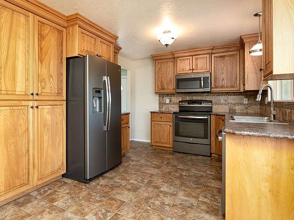 You are going to love this newer kitchen with Custom cabinets and nice appliances! This cute home boasts 4 bedrooms, vinyl windows, new roof, maintenance free siding, finished family room with cozy pellet stove, new vanity, newer doors and.... NEW CARPET throughout the Entire home!!! An energy efficient Ductless heating and cooling system provides year round comfort. This home has a very light and bright feeling. Enjoy the quiet street, the covered patio, and no neighbors in your backyard!
