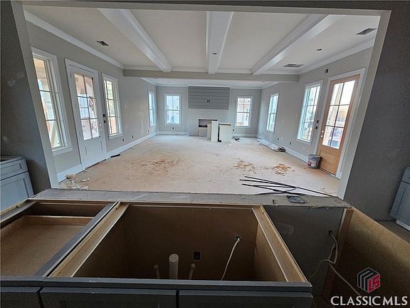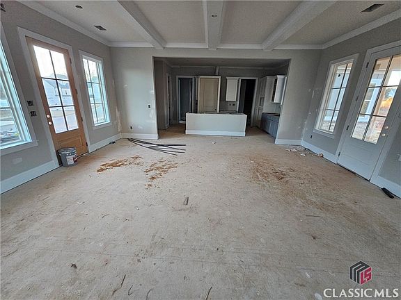 Welcome to Luxury Cottages living in Watkinsville’s premiere community Trove. Cottage 5 features the primary bedroom on the main with 4 bedrooms, and 3.5 baths. On the main level is a foyer opening into the family room, gourmet kitchen, family room, office, and primary bedroom. The gourmet kitchen features granite countertops, tile backsplash, an island, a pantry, gourmet stainless steel appliances, and hardwood floors. The primary bedroom has a beautiful bathroom and walk-in closet. Stairs w/ oak handrails and wrought iron spindles lead upstairs. 2nd floor features and a flex room, 3 secondary bedrooms and 2 baths. The exterior features a covered loggia with fireplace.