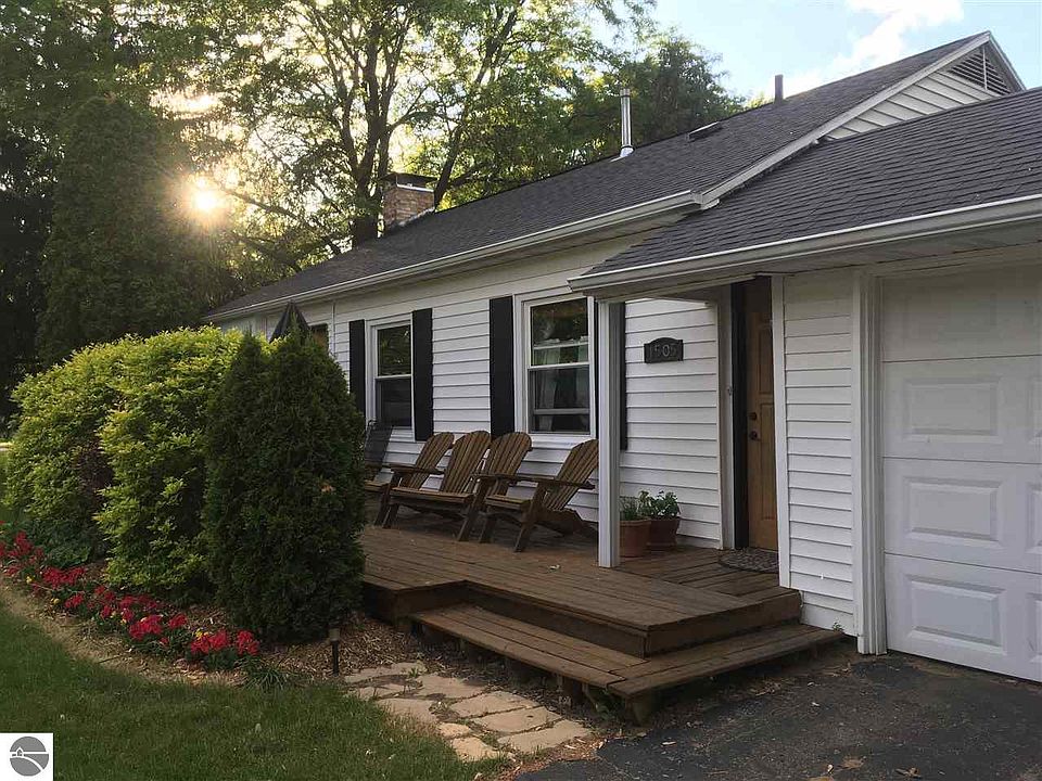 Move in ready, only two blocks from the hospital! Three bedrooms and one elegant, efficient bath. Cozy, stone fireplace adds warmth and soothing atmosphere. Polished hardwood floors adorn the living-room, hallway and bedrooms. Easy-to-clean ceramic tile in the kitchen, bathroom and shower add a touch of charm. Like-new kitchen cabinets were refinished by an Amish craftsman. Ample closet and pantry make the most of this darling home in a quiet neighborhood not far from elementary school playgrounds and Morey Courts. Spacious corner lot with tree-lined, fenced in backyard is perfect for furry friends. A stained, private deck makes summer get togethers memorable. (Did someone say barbecue?) Attached, one car garage will fit all but the biggest of SUVs and still have room for oodles of holiday decorations overhead. A newer roof will keep your family worry-free, and a new furnace keeps the gas bills most affordable.