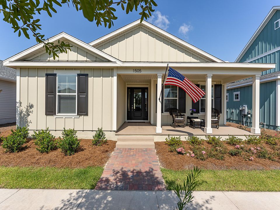 Beautiful one-level home in the popular waterfront community, SweetBay. The Orchid model features three bedrooms, two baths, open floor plan, large pantry, covered front and back porches, detached three car garage. SweetBay if a golf cart friendly community centrally located in Panama City close to shopping, restaurants and medical facilities. The development includes a community pool, sports court, walking trails and bay access.