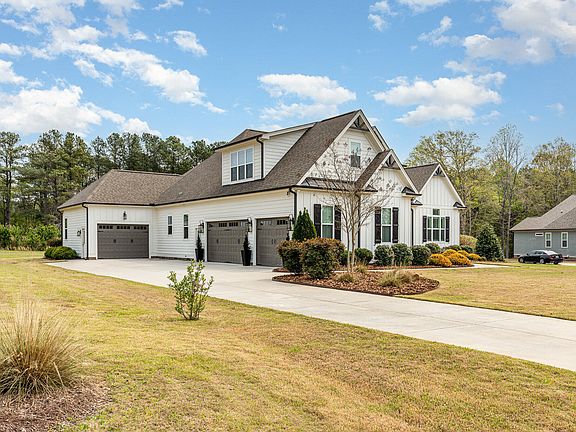Stunning former parade winner! Gorgeous modern farmhouse sitting on 1 acre in lovely Sweetwater nghbrd. Beautiful attention to detail w/10 ft ceilings on main, 9 ft on second. Extensive wainscotting/molding/shiplap. Main flr primary bedrm & bath fit for royalty. Dual vanities w/farmhouse sinks, oversized walk in shower w/dual heads and gorgeous tile inlay, soaking tub, and towel warmers. In-law suite w/ private garage entrance, full bath and huge walk in closet. Gourmet kit, open layout w/abundant natural light. Builtins around frplc, beamed vaulted ceilings, and immaculate hrdwds. Plantation shttrs on main, 1ft flr office, mudrm & laundry. Upstairs is a massive bonus/media/bar area. 2 addtl bedrms w/onsuite baths & large walkin closets. Finished storage for your precious holiday decor as well as a walk-in unfinished attic. Dont miss the stunning screened porch and stone,woodburning fireplace on the patio. All this & 4 car garage..Country living yet minutes to Downtown Raleigh & Midtown. No City Taxes. Hurry this one is incredible and will not last!