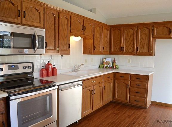 Setting pretty at the end of a quiet cul-de-sac, this quality brick rancher feels like a brand new home. Sun shines onto the beautiful hardwood in the cheerful, eat-in kitchen. Cathedral ceilings add to the appeal of the inviting living room with fresh new carpet. Sleep easy under the double fan and coffered ceiling of the spacious master suite complete with private bath. The finished family room with kitchenette is a wonderful place to unwind. Enjoy the seasons on the deck overlooking the oversized fenced yard and charming playground. This remodeled home is ready and waiting for you.