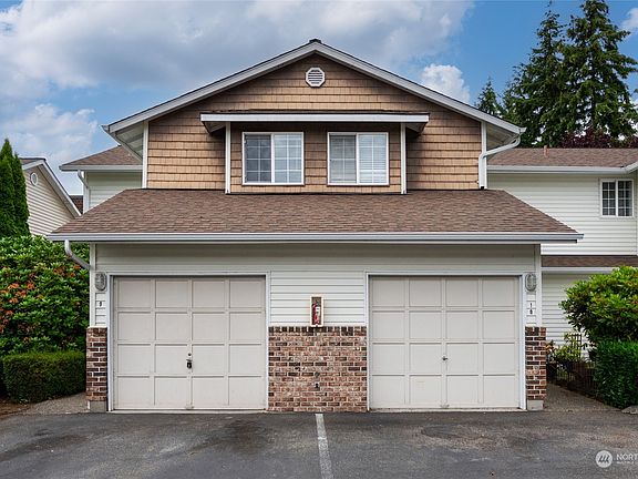 Great Price! Excellent Townhome Style Condo with 2 primary bedrooms with attached full bathrooms upstairs! Additional half bath on main level. Open concept living on the main floor leading out to private fenced deck! 978 square feet in total, this 2 bed 2.5 bath home even has an attached garage with access from inside the unit! Home is staged and move in ready, and having both garage parking and off street parking (pkg for 2) is a huge bonus! Well Kept complex near parks, Walter Hall Golf course, and seamless access to Boeing and I5 as well as bus lines! Come see today!