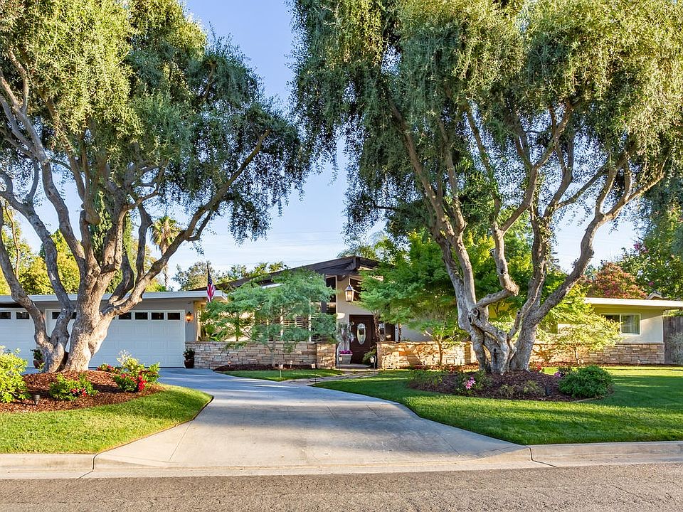 This Mid-Century Modern has been tastefully remodeled with so many extras! From the moment you walk into this home you will notice the stone fireplace along with the nice hardwood flooring. As you walk into the gourmet kitchen you will notice the stunning countertops along with custom cabinetry. The appliances include a built-in fridge, trash compactor, dish washer and Jenn-Air stove. The master bedroom is like its own private retreat with its own fireplace that is also double sided to the master bath which will have you feeling like you are at the spa. This oasis backyard with the sparkling pool with guest house, all this is located on a large 13,000 sq ft lot in this nice established Bullard neighborhood.
