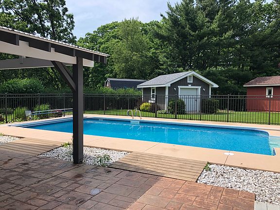 View our 3-D video & walk thru in real time! You waited for it & here it is!!!! Beautiful sprawling ALL brick 3200+ sq ft ranch on 1 acre on a quiet cul-de-sac. The grounds are just stunning w/ mature trees. Salt water in-ground pool has an automatic cover & it is gleaming & ready for you! Amazing outdoor living w/ covered space, storage/work shed w/ roll up door. A fantastic addition was put on including a fabulous basement area in 2011. HUGE living room, family room w/ cozy fireplace & rec room. There is not a small room in the house. The gourmet kitchen w/ high end details include: hickory cabinets, soft close doors, slide outs drawers, stainless steel appliances, granite countertops & breakfast bar...perfect for entertaining. Master suite w/ updated bath & dual closets. Mud room w/ butcher block counter & extra cabinets for storage. Over-sized garage. Great storage area in basement. Fenced dog run added recently. You are going to LOVE living here!