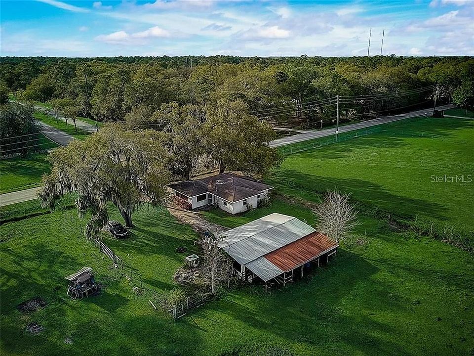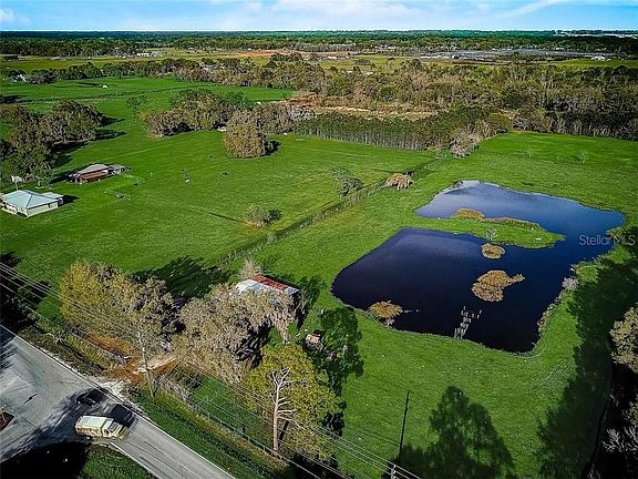 If you're looking for LAND & PRIVACY, this is it! So many options - enjoy this home situated on 5 PRIVATE ACRES or even build your dream home! Peaceful, country living abound on this tranquil estate with a 1.5 acre pond stocked with Largemouth Bass, Catfish, Tilapia, BlueGill, Crappie and Banana Trees. Wake up to gorgeous sunrises in the morning, and fish for dinner at the private pond while enjoying the beautiful sunset. Bird watcher? You're in luck as many water birds including Duck, Egret, Heron, Spoonbill, Ibis, Stock, and Cranes frequent the property. This property is completely fenced and also features a 4 stall barn, utility room and chicken coop. Perfect for horses, cows or any kind of farming you can imagine with plenty of room to roam. The two bedroom, one bath home with almost 1300 square feet of living features an open kitchen with two skylights, family room and spacious living room and separate dining room. Newer appliances, Corian countertops, with great kitchen cabinet storage. The air conditioner was replaced in 2016, water heater and well pump were replaced in 2019 as well as a newer water softener. Conveniently located near Walker Road Park with baseball, softball and other sports facilities as well as hiking trails. Convenient to Medical Facilities, Restaurants, Shopping and easy drive to Tampa, Orlando or downtown Lakeland. A MUST SEE!!!