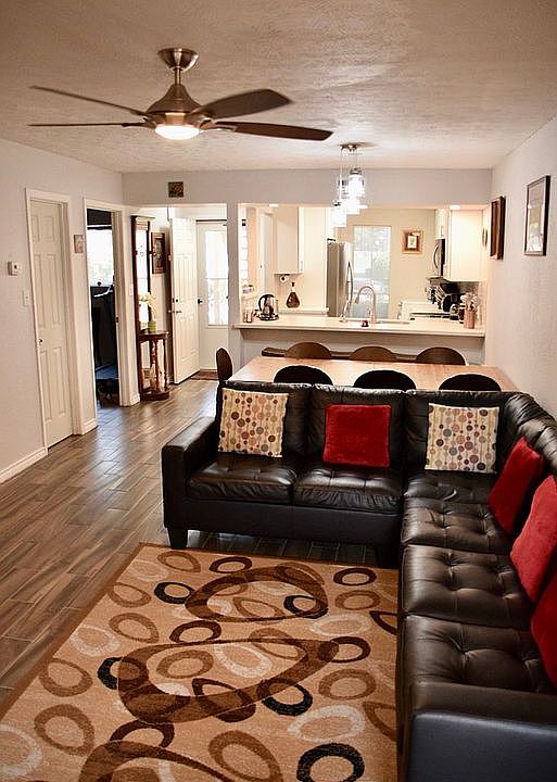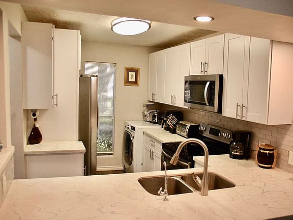 Upgrades in this 2 bedroom/2 full bath home are throughout! Designer wood look flooring, cabinetry, countertops, backsplash, and paint. Beautiful wood look tile in every room! Gorgeous granite and soft close cabinets in the kitchen. All stainless appliances go with the sale. Checkout the washer/dryer combo! Open concept living from kitchen, dining and living spaces. Lots of natural light from the patio. Corner fireplace creates a warm ambience for entertaining or just relaxing. The primary suite is very spacious and features an en suite bath. All new white farmhouse style vanity and sink. Huge shower with seating is so amazing. This home is move-in ready! Maintenance fee covers outside maintenance, insurance on outside structure, water, sewer and trash pick up. Enjoy life in this lovely home!